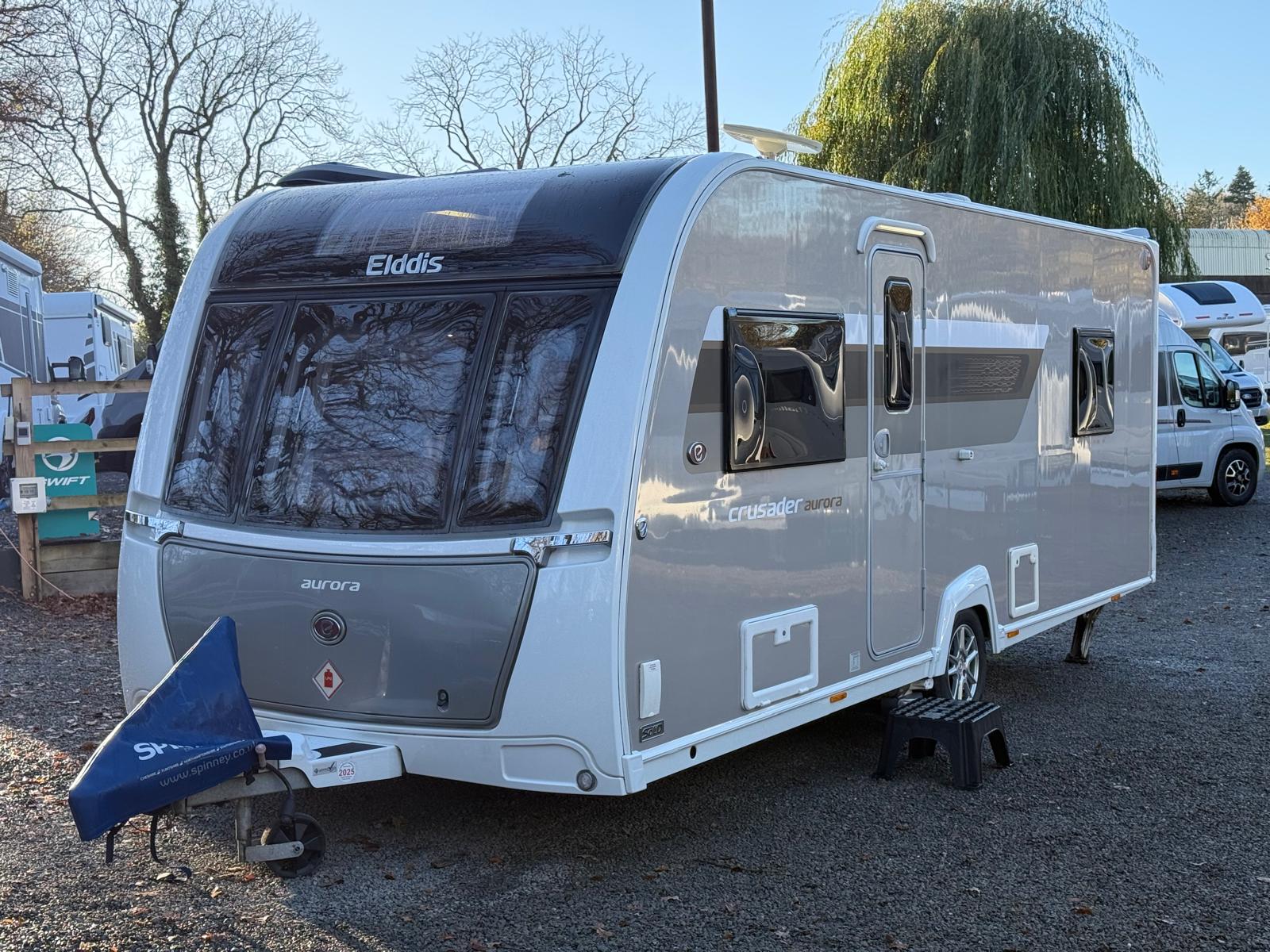 The Elddis Crusader Aurora is a spacious and practical four-berth tourer, designed for comfort and convenience on every trip. This 2019 model comes equipped with popular extras including a 100W solar panel, ATC stability control and a Powrtouch motor mover, making towing and off-grid camping easier and more enjoyable.